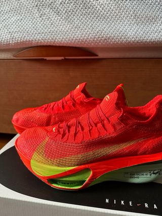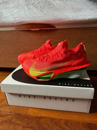 Puestas únicamente UN ENTRENAMIENTO. Zapatillas de running Nike ZoomX Vaporfly Next% 4. - Diseño en rojo y verde. - Talla 44