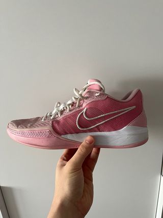 Zapatillas deportivas Nike Sabrina 1 en tonos rosa y blanco. - Diseño moderno y llamativo. - Cierre con cordones blancos. - Detalle de swoosh en contraste. -Muy buen agarre -Precio negociable