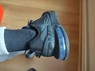 Zapatillas Nike Air Max en color negro originales. Talla 38.5. La playera derecha tiene un alza de 3 cm, apta para personas con dismetria de las piernas. - Diseño clásico y versátil. - Cierre con cordones para un ajuste seguro. - Detalle metálico en los cordones con el logo de la marca.