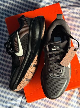Zapatillas deportivas Nike Vomero 18 en color negro y marrón. Diseñadas para correr. - Parte superior de malla transpirable. - Amortiguación Zoom Air. - Suela de goma duradera. Nuevas, a estrenar. Se entregan con caja original.