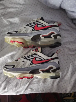 Zapatillas Nike Vapormax EVO con detalles en rojo y blanco. - Diseño moderno y deportivo. - Suela con tecnología Vapormax Air. - Combinación de materiales en el upper talla 44.5 Usadas muy poco