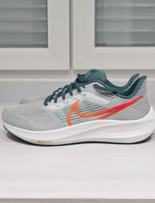 Zapatillas deportivas Nike Pegasus 38 en talla 43, me las he puesto solo 2 veces, están completamente nuevas. Diseño moderno y cómodo. - Parte superior de malla transpirable. - Suela de goma duradera. - Detalle de Swoosh en naranja.