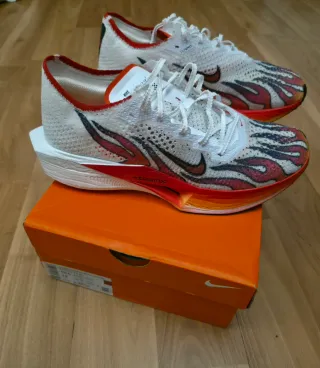 Zapatillas deportivas Nike Vaporfly 3. Son nuevas a estrenar como se aprecia en las fotos. - Parte superior de tejido Flyknit. - Detalles de llamas en rojas y negras Ekiden. - Suela ZoomX y placa de carbono FlyPlate