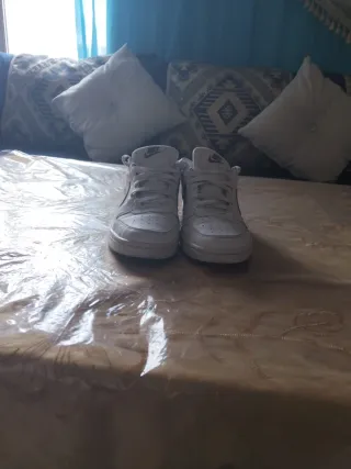 Zapatillas deportivas en color blanco y plateado. - Diseño unisex. - Detalle de Swoosh plateado en el lateral. - Suela con tecnología están seminuevas puestas poco y lo del despegado de hay si precio