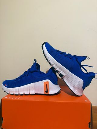 Zapatillas deportivas Nike Free Metcon 6 en talla 36.5. - Diseño en color azul con detalles naranjas. - Suela blanca con tecnología Free Metcon.