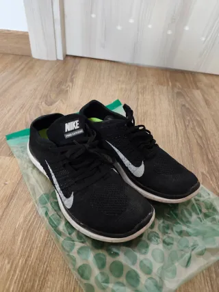 Zapatillas deportivas Nike Free RN Flyknit en color negro y talla 41. Perfectas para running o uso diario. - Diseño ligero y transpirable. - Suela flexible para mayor comodidad. - Cierre con cordones.