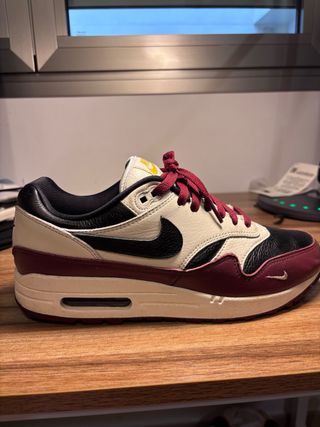 Zapatillas Nike Air Max diseñadas por mi en web. no hay otras iguales. las vendo porque me están demsiado justas. me las he puesto 5 veces como mucho. - Combinación de colores beige y rojo. - Detalle de swoosh negro. - Cordones en color burdeos.