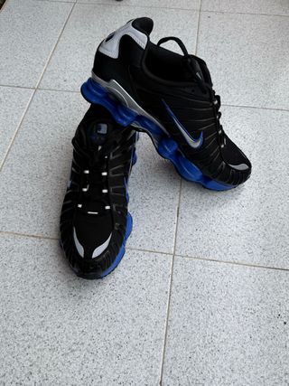 ORIGINALES Zapatillas deportivas Nike Shox TL en color negro con detalles en azul. Son originales, tengo recibo, las vendo porque las pedí por Nike y cuado me llegaron no me valían, no tienen ni un solo uso. - Diseño moderno y llamativo. - Suela con tecnología Shox para amortiguación. - Logotipo de Nike en el lateral.