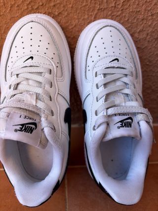 Zapatillas deportivas Nike Air Force 1. -Sin plantillas - Diseño clásico en blanco y negro. - Logo de Nike en el lateral y el talón.