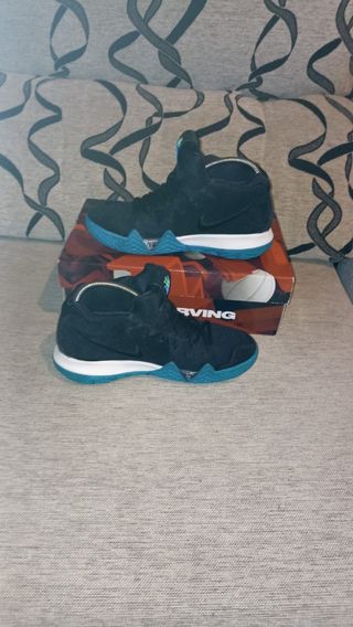 Zapatillas Nike Kyrie 4 en color azul obsidiana. Diseño moderno y cómodo. Usadas de vez en cuando para salir, en muy buen estado, zapatillas un tanto caras en compra de nuevo, lamentablemente a mí hijo le ha crecido el pie y ya no le valen, vendo más zapatillas y ropa de este estilo, revisa el perfil - Entrego con su caja original - Son de Ante azul y otros materiales - Cierre de cordones. - Suela de goma para mayor tracción. - Detalles en azul vibrante.