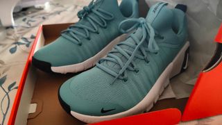 Zapatillas deportivas Nike Metcon 6 en color azul verdoso y blanco. - Diseño moderno y cómodo. - Suela flexible para mayor rendimiento. - Cierre de cordones.