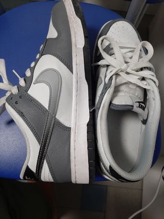 Zapatillas Nike Dunk NN GS para jóvenes, en tonos gris y blanco. Están en buen estado y listas para usarse. - Modelo: Nike Dunk NN GS - Ideales para el uso diario.