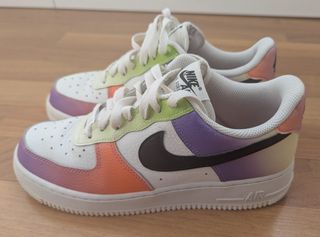 Zapatillas Nike Air Force 1 con un diseño vibrante y moderno. Perfectas para un estilo casual y llamativo. Zapatillas usadas, recuerda que no es un articulo nuevo. - Combinación de colores: blanco, naranja, verde lima, morado y rosa. - Icónico logo Swoosh en negro. - Suela blanca con detalles AIR.