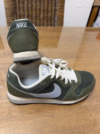 Bonitas Zapatillas deportivas Nike con un diseño moderno y cómodo,talla 40 pero van perfectas para un 39 con muy poco uso. - Parte superior en tela verde. - Detalles en color blanco. - Suela de goma. - Cierre con cordones.
