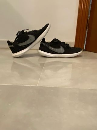 Zapatillas deportivas Nike Free en color negro y blanco. Perfectas para entrenar o para el día a día. Tienen signos de uso pero puestas no se nota nada son muy cómodas compradas el JD. - Diseño moderno y ligero. - Suela con tecnología Free para mayor flexibilidad. - Cierre con cordones. - Logo de Nike visible.