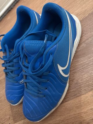 Zapatillas deportivas para fútbol sala. - Diseño en color azul. - Marca Nike. TIENEN UN PEQUEÑO AGUJERO EN LA SUELA PERO NO ESTÁ ROTA DEL TODO , SE PUEDEN USAR