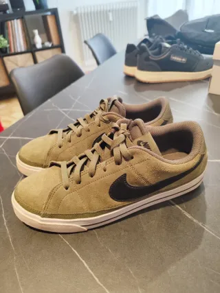 Zapatillas deportivas Nike Court Legacy Suede en tonos verde oliva y negro. - Exterior de ante. - Detalle de Swoosh en contraste. - Suela de goma. - Cierre con cordones.