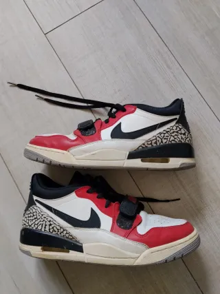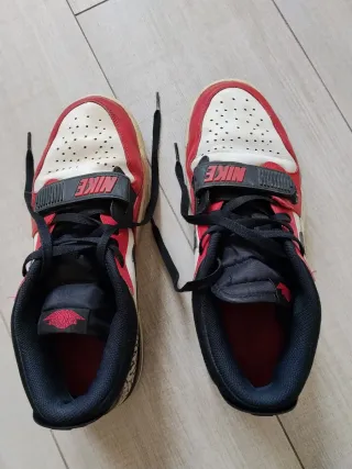 Zapatillas deportivas Nike Jordan con un diseño llamativo en rojo y blanco. - Cierre con cordones y correa. - Detalle de logo en la lengüeta. - Suela de goma.