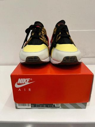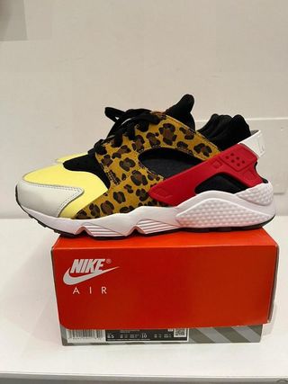 Zapatillas Nike Air Huarache en talla 10 us / 42 hombre (tallan pequeña). Los he puestos dos veces, pero por un accidente ya no me cabe muy bién el pie izquierda. Vienen con la caja original, pero la caja ya ha sufrido por envios i tiene cinta. - Diseño con paneles perforados. - Combinación de colores beige, azul y naranja.
