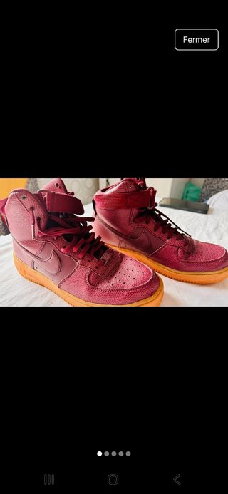 Zapatillas altas Nike Air Force 1 en tonos marrones y rojos. - Diseño con textura. - Cierre de cordones y velcro. - Suela de goma. - Logo de Nike en el lateral.