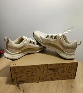 Zapatillas Nike React Pegasus Trail 4 en color beige, talla 38.5. Nuevas a estrenar Envío externo rápido Originales - Diseño moderno y ligero. - Detalles en tono arena. - Cordones blancos.