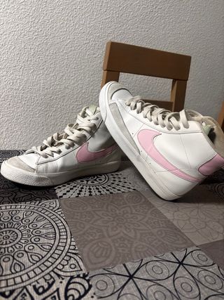 Zapatillas deportivas Nike Blazer Mid '77. - Diseño de caña media. - Combinación de colores blanco y rosa. - Cierre con cordones.