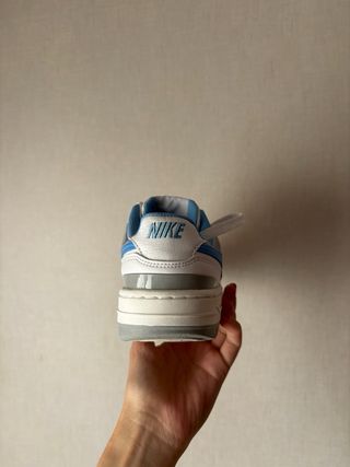 Zapatillas Nike Air Force 1 Shadow en color blanco y azul. Ideales para un look casual y cómodo. Me las compre y no las usaba porque me rozaban mucho alguna vez las he usado pero me hacen daño en un lateral ya que yo tengo el pie mas ancho. - Son de plataforma. - Están en muy buen estado.