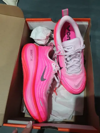 Zapatillas de running Nike ZoomX Invincible Run FK 2. - Diseño en tejido de punto. - Detalles en blanco y morado. - Talla 41 * la suela en una de ellas esta un poco despegada, nada que no arregle un poco de pegamento ;)