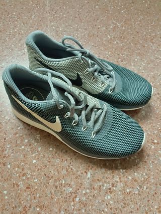 Zapatillas deportivas Nike en talla 40. - Diseño en gris y blanco. - Cierre con cordones. Tiene desgaste en la suela en la parte de los talones como se pueden ver en las fotos. Están muy usadas.
