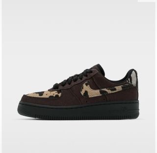 Zapatillas Nike Air Force 1 con un diseño animal print. - Combinación de ante marrón y detalles con estampado. - Swoosh lateral con acabado texturizado. - Talón con estampado de cebra.
