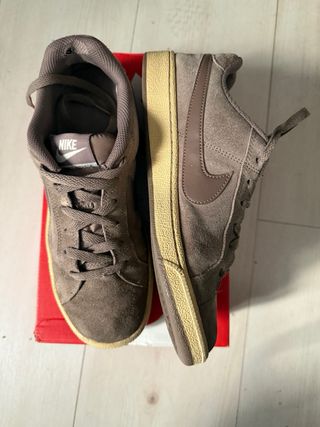 Zapatillas deportivas Nike en tonos beige como de ante. Perfectas para el día a día. muy cómodas y con poco uso como se puede apreciar por el nulo desgaste de la suela.  - Diseño deportivo. - Cierre con cordones. - Detalle de logo en el lateral. No tiene la suela interior extraíble. El exterior un poco oscurecido del uso, pero que con una pequeña limpieza se quedarían como unas nuevas