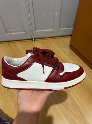 Zapatillas de estilo deportivo 240cm - Combinación de colores rojo y blanco. - Cordones rojos. - Suela blanca.