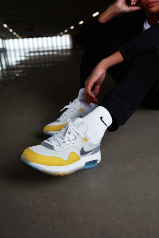 Zapatillas deportivas Nike Air Max Motif. Modelo que rinde homenaje a las Air Max 1. Nunca usadas. - Combinación de colores blanco y amarillo. - Detalle de Swoosh en gris. - Suela con cámara de aire visible.