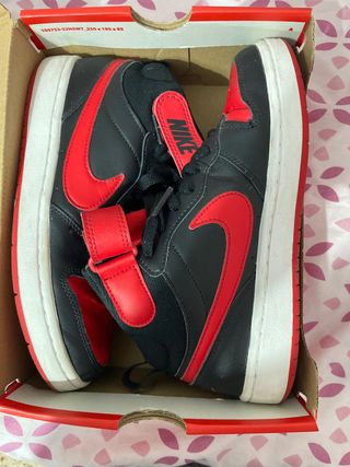 Zapatillas deportivas Nike de corte alto. - Combinación de colores negro y rojo. - Cierre con velcro y cordones.