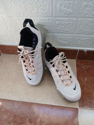Zapatillas deportivas Nike de mujer, talla 38, en color blanco. Son un par de zapatillas usadas, con señales normales de uso. - Modelo Nike Air Max. - Suela ligeramente amarillenta.