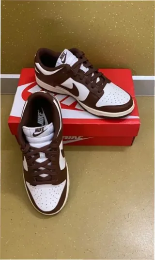 Zapatillas Nike Dunk Low con un diseño clásico en marrón y blanco. - Combinación de colores marrón y blanco. - Talla 37.5.