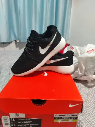 Zapatillas deportivas Nike Roshe Run en color negro, talla 37. - Diseño moderno y ligero. - Cierre con cordones. - Suela blanca. - Ideales para uso diario.