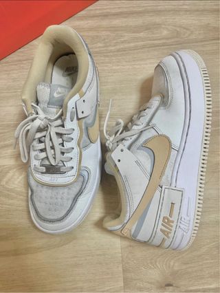 Zapatillas Nike Air Force 1 Shadow con detalles en tela. Apenas sin usar, originales me costaron 130€ - Combinación de colores beige y blanco. - Materiales textiles y cuero.