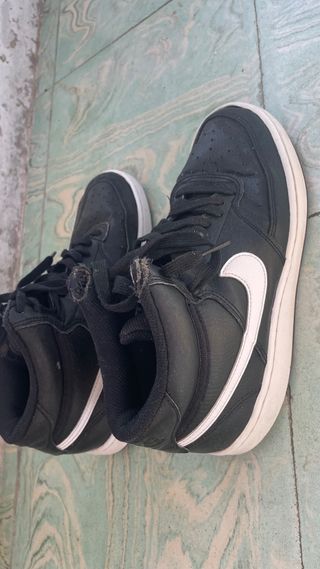 Zapatillas altas de la marca Nike en color negro con detalles blancos. - Diseño deportivo. - Cierre con cordones. - Suela de goma. - Cordones nuevos - Recien lavadas