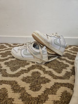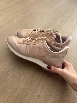Zapatillas deportivas Nike en tonos beige y rosa. Diseño moderno y cómodo. - Parte superior de ante y tejido. - Suela de goma. - Cierre con cordones. (solo usadas una vez durante una hora las vendo porque se me han quedado pequeñas sin usarlas ) -están perfectas