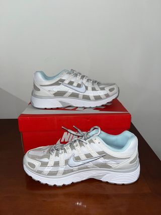 Zapatillas deportivas Nike P6000 con un diseño moderno y cómodo. - Combinación de colores gris, blanco y azul cielo. - Estilo retro inspirado en el running. - Parte superior de malla y superposiciones. - Suela robusta para mayor amortiguación.