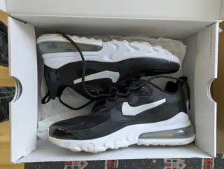 Zapatillas Nike Air Max 270 React para mujer. - Diseño en negro y blanco. - Suela con unidad Air Max visible. - Usadas por mi viejita para ir al gym 5 veces