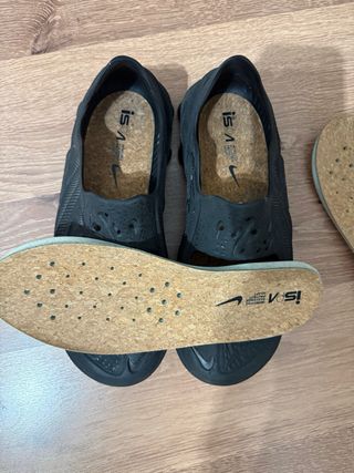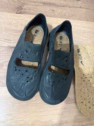 Zapatillas Nike originales en color negro. Incluyen plantillas de corcho. - Diseño moderno con perforaciones. - Logo de Nike en la parte delantera. - Plantillas extraíbles de corcho. ORIGINALES !! ESTÁN COMO NUEVAS !!!! UNA VEZ USADAS DOS RECAMBIOS DE PLANTILLA DE CORCHO ! SON UNA PASADA !