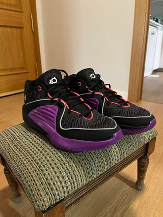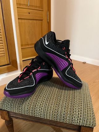Zapatillas de baloncesto Nike KD, a estrenar y en su caja original. - Diseño moderno en negro y morado. - Cordones negros. - Suela morada.