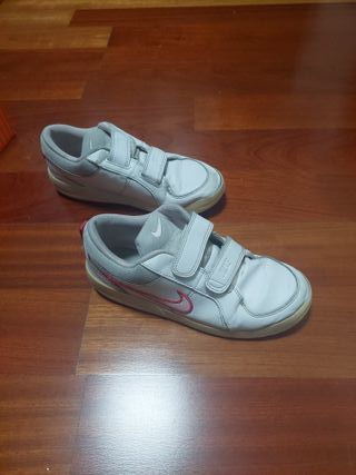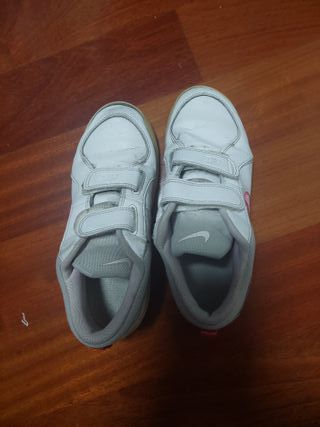 Zapatillas Nike para niña en perfecto estado, casi nuevas. Talla 34 - Cierre de velcro. - Diseño en color blanco y rosa. - Suela de goma.
