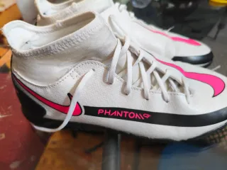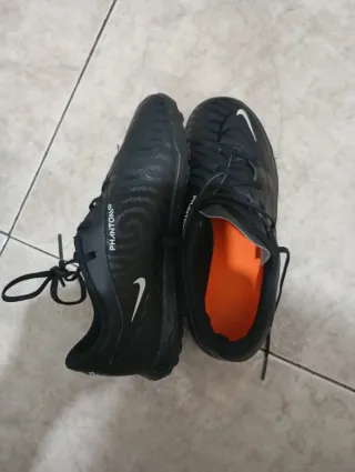 Zapatillas de fútbol para niño, modelo Nike Phantom. Talla EU 35 UK4. MI hijo solo se las ha puesto una vez porque luego dijo que quería tenis y no fútbol, luego están nuevas prácticamente. Las PHAMTOM son un clásico yan en fútbol. Hago envíos. Costaron casi 70 euros. Originales compradas en El Corte Inglés este año. - Color gris con detalles en amarillo. - Cierre con cordones. - Logo de Nike en el lateral.