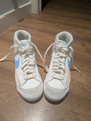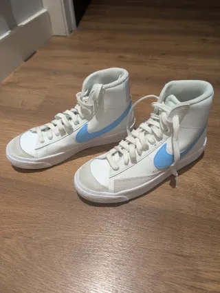 Zapatillas altas Nike Blazer Mid 77 Vintage. - Diseño clásico con detalles en azul. - Combinación de cuero y ante en la parte superior. - Suela de goma vulcanizada. NUEVAS EN SU CAJA UNISEX (MUJER ,HOMRE O NIÑO) PERFECTAS PARA REGALAR ESTAS NAVIDADES ESCUCHO OFERTAS