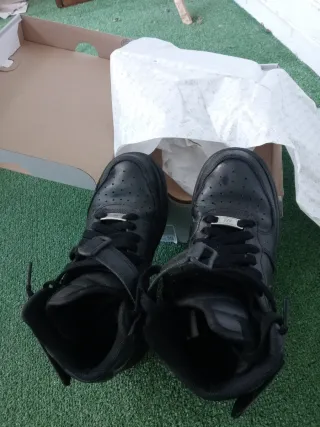 Zapatillas altas Nike Air Force 1 para niño.Zapatillas originales bota Nike Air Force 1 para niño en color negro. Cuentan con cierre de velcro y cordones. Talla 36,5 . Casi nuevas, en muy buen estado, usadas muy poco. No hago portes. Recoger en zona pau de carabanchel. - Diseño tipo bota. - Detalle AF1 en la puntera. Talla 36.5 - Diseño tipo bota. - Cierre con cordones y velcro. - Detalle metálico AF1 en la lengüeta.