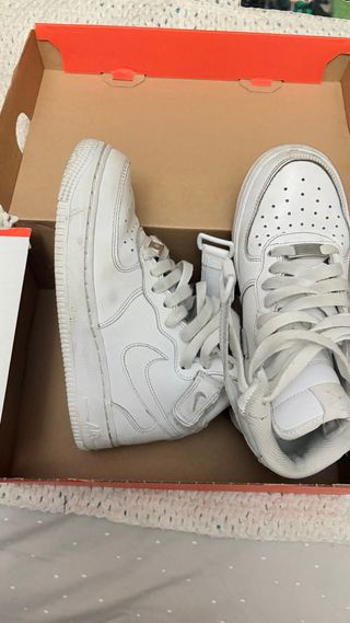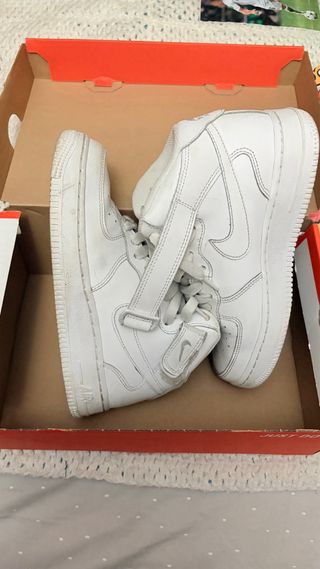 Zapatillas altas Nike Air Force 1 MID en color blanco. Perfectas para el día a día. usadas 7 meses porque se le quedaron pequeñas , solo puestas puntuales. talla 36,5 de niño. - Cierre con cordones. - Detalle de Swoosh lateral. - Suela de goma.