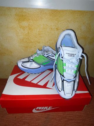 Zapatillas deportivas Nike Pegasus Wave. - Diseño en blanco y verde. - Talla 35.5.